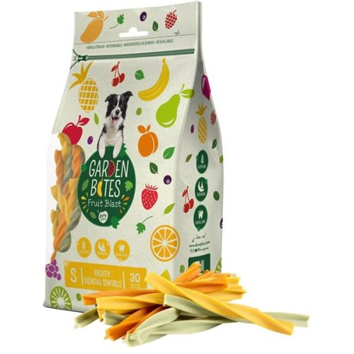 Vegetariánska pochúťka Garden Bites je ideálnou odmenou pre Vášho psa. Výborná maškrta pre psov trpiacich na alergie, pretože táto pochúťka je 100% bez lepku a ľahko stráviteľná. Vďaka špeciálnym tvarom napomáha maškrtu pri čistení a masírovaní zubov. Prírodný extrakt oleja z mäty potom zaisťuje čerstvý dych. Garden Bites obsahuje najmenej 55% sladkých zemiakov, ktoré sú skvelým doplnkom stravy Vášho psa. Sladké zemiaky sú bohaté na vápnik a železo. Zloženie: Zeleniny (55% batáty), ovocie (4% banán, 4% broskyňa, 4% hruška), vedľajšie výrobky rastlinného pôvodu, minerálne látky, kvasnice, oleje a tuky (0,1% prírodný mätový olej). Analytické zložky: Hrubý proteín 1,5 %, obsah tuku 0,5 %, hrubá vláknina 2,5 %, hrubý popol 6,5 %, vlhkosť 15 %, vápnik 2,4 %, fosfor 0,3 %, horčík 0, 1%. Doplnkové látky: obsahuje EÚ povolené farbivá a konzervanty. Kŕmny návod: Odporúčaná denná dávka je uvedená na obale. Táto maškrta nie je odporúčaný pre šteňatá do 6 mesiacov veku. Nie je určené pre ľudskú spotrebu.