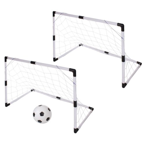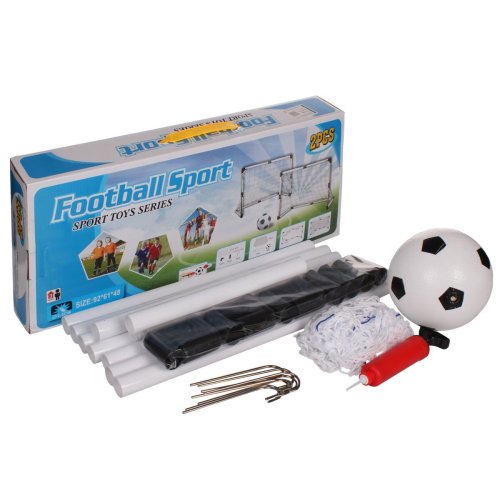 Merco Garden Goal Set je sada dvoch skladacích gólov na mini futbal s rodinou a priateľmi. Bránky sú vyrobené z ľahkého PVC materiálu, ich rozmery sú 92 x 61 x 48 cm a ich montáž je rýchla a jednoduchá. Balenie tiež obsahuje dve polyesterové siete, malú gumovú loptičku s priemerom 13 cm, ručnú pumpičku s ihlou a kovové háčiky na upevnenie bránok do zeme. Pokiaľ nemáte záhradu, nevadí. Vďaka malému rozmeru balenia a nízkej hmotnosti si tento set vezmete aj na dovolenku či do parku. - sada: 2 bránky so sieťou, loptička, pumpička, háčiky do zeme - materiál: PVC - rozmery bránky: 92 x 61 x 48 cm - rozmery balenia: 57 x 22 x 8 cm - hmotnosť balenia: 1,1 kg - nie je vhodné pre deti mladšie ako 3 roky