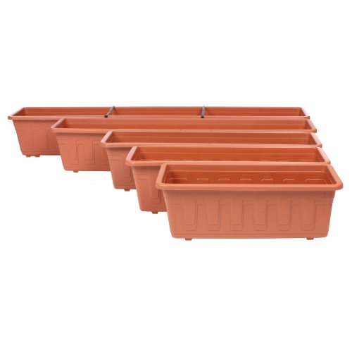 Hrantík Garden z odolného plastového materiálu je určený nielen pre záhradkárov, ale všetkých, ktorí si chcú na svoj balkón či terasu priniesť kúsok zelenej záhrady. Klasický kvetináč ponúkame v niekoľkých dĺžkach a obľúbených farebných variantoch - hnedá a terakota. Plastový kvetináč je ľahký, drží si stály tvar a je vhodný ako na vnútorné, tak na vonkajšie použitie. V dne kvetináča je možné vyvŕtať drenážne otvory pre odtok prebytočnej dažďovej vody. Na zavesenie kvetináča na zábradlie odporúčame zaobstarať závesné držiaky. Pokiaľ budete mať kvetináč umiestnený na parapete, stole či na zemi, odporúčame prikúpiť misku pod kvetináč Garden, ktorá bude zadržiavať prebytočnú vodu (v prípade, že máte vyvŕtané drenážne otvory). Parametre: Garden 40 Dĺžka: 39 cm Šírka: 17 cm Výška: 15 cm Garden 50 Dĺžka: 49 cm Šírka: 17 cm Výška: 15 cm Garden 60 Dĺžka: 59 cm Šírka: 17 cm Výška: 15 cm Garden 80 Dĺžka: 78 cm Šírka: 17 cm Výška: 15 cm Garden 100 Dĺžka: 98 cm Šírka: 18 cm Výška: 15 cm