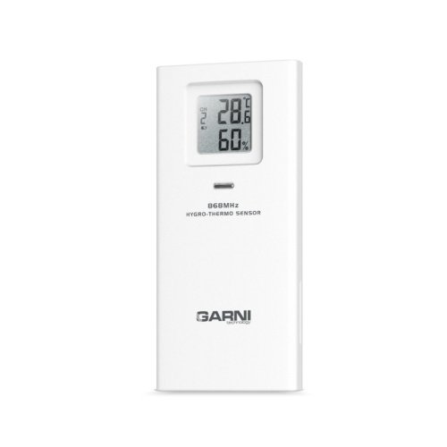 Sedmikanálové bezdrôtové čidlo pre meranie teploty a relatívnej vlhkosti, určené pre Wi-Fi meteorologickú stanicu GARNI 3015 Arcus , GARNI 2055 Arcus, GARNI 2040 Arcus , GARNI 1085 Arcus 750 a šikovný digitálny teplomer s vlhkomerom GARNI 419T .