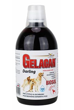 Gelacan DARLING biosolu - kolagénne VÝŽIVA KĹBOV S VITAMÍNY Regeneračný výživa kostí a kĺbov vo vysoko vstrebateľnej a využiteľnej forme kolagénneho biosolu. Forma biosolu zaisťuje rýchlu vstrebateľnosť a maximálnu využiteľnosť účinných látok a spolu s čokoládovou príchuťou umožňuje jednoduchú aplikáciu v prípade problematického príjmu práškových prípravkov. Slúži k regenerácii kĺbových povrchov a väzív a zmierňuje ťažkosti spôsobené degeneratívnymi procesmi spojivového tkaniva, ktoré sú príčinou bolestí pohybového aparátu. Kolagénne hydrolyzát CHP vyživuje a obnovuje kostné a chrupavkové bunky, podporuje novotvorbu kolagénových vlákien a pozitívne tak ovplyvňuje regeneračné schopnosti kĺbovej chrupavky. Vitamín E a selén pôsobia ako silné antioxidanty a chránia kĺbové tkanivá pred škodlivým pôsobením voľných radikálov. Indikačná skupina: doplnk. krmivo - chondroprotektívum indikácie: pri ochorení končatín a problémoch pohybového aparátu pre regeneráciu kĺbových chrupaviek, kostí a väzov pri ochorení a poranení šliach pri dysplázii bedrových kĺbov po operáciách a na zlepšenie hojenia rán pre predĺženie aktívneho veku psa Odporúčané dávkovanie: 5 ml na 10 kg hmotnosti psa Spôsob použitia: Forma biosolu zaisťuje jednoduchú aplikáciu prípravku. Vďaka čokoládovej chuti je prípravok psami veľmi dobre prijímaný. V prípade obzvlášť ťažko kŕmiteľných psov je možné prípravok podať plastovou striekačkou do dutiny ústnej.