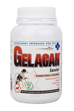 Gelacan® Senior je veterinárny prípravok - nutraceutikum s bioaktívnymi kolagénnymi peptidmi a bylinnými extraktmi pre výživu a regeneráciu pohybového aparátu a pre celkové posilnenie a vitalizáciu organizmu psov.