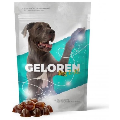 Geloren DOG L-XL - kĺbová výživa vo forme žuvacej maškrty Geloren DOG je k dispozícii v dvoch veľkostiach pre menšie a väčšie plemená. Navyše ochutená pečeňovou príchuťou, ktorá je psíkov dobre prijímaná. Odporúčame podávať Geloren DOG...