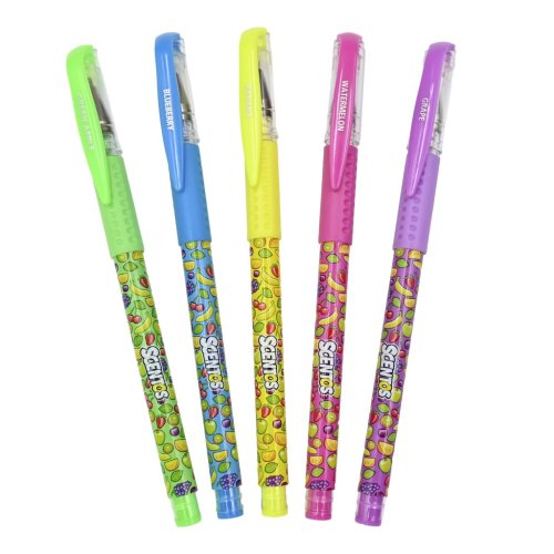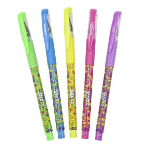 Gélové perá Scentos - Neon predstavujú kreatívnu sadu piatich gélových pier, ktoré kombinujú žiarivé neónové farby s jemnými ovocnými vôňami. Každé pero je navrhnuté tak, aby písanie či kreslenie bolo nielen farebne výrazné, ale aj príjemné vďaka špecifickej ovocnej vôni. V balení nájdete päť rôznych farieb, konkrétne zelenú (green apple), modrú (blueberry), žltú (banana), ružovú (watermelon) a fialovú (grape), čo dáva širokú škálu možností pre kreatívne tvorenie, zvýrazňovanie aj dekorovanie.
