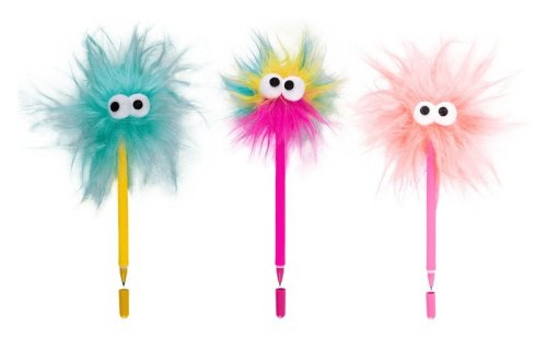 Gélové perá sú obľúbené pre ľahké písanie, linka je veľmi intenzívna a konštantná. Vhodné na každodenné použitie, do školy, domov alebo do kancelárie. brbrRoztomilí chlpáči s vyguľatými očami, ktorí sa neustále pohybujú do rytmu tvojho písania. Matné silikónové telo pera skvele padne do ruky a prináša pohodlný úchop, ľahké uzatváranie pomocou viečka.
