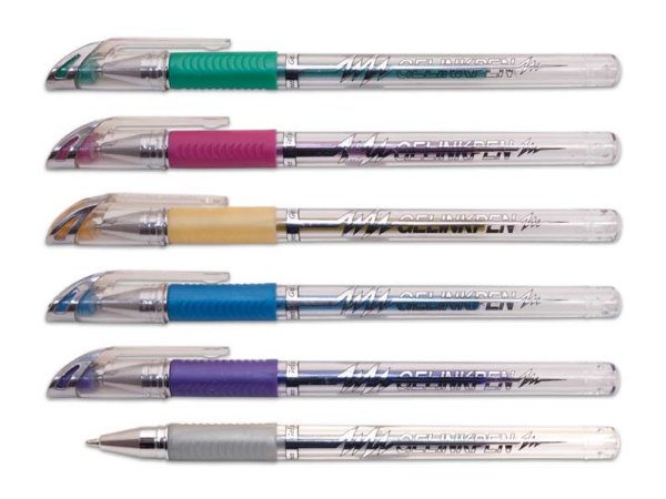 Set 6 ks gélových pier v METALICKÝCH farbách s hrotom 1 mm. Vhodná pre školské, kancelárske, ale aj domáce použitie. Gélové pero má pogumovaný úchop, a tak zabraňuje kĺzaniu v ruke. <br><br> Dĺžka: 150 mm<br> Prevedenie: s vrškom<br> Počet ks v balení: 6 ks<br> Farba: zelená, žltá, modrá, ružová, fialová, strieborná <br> Výrobok je určený pre deti od 3 rokov