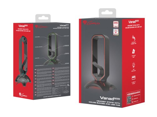 Zoznámte sa s Genesis VANAD 500 Genesis VANAD 500 je herné príslušenstvo, na ktoré ste čakali. Vysoko kvalitný, vycibrený mouse bungee stojan, ktorý vám okrem základných funkcií ponúka mnoho ďalšieho, pretože ide o štýlový stojan na slúchadlá, USB HUB a držiak kábla myši v jednom.
