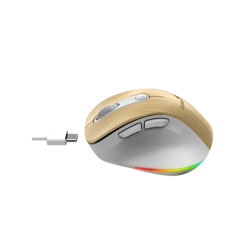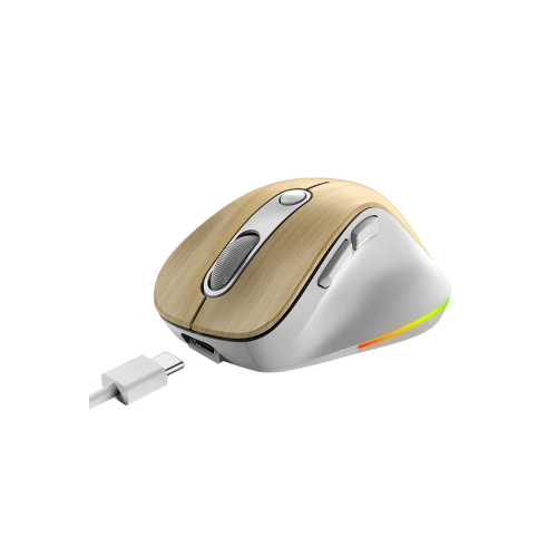 Ergonomická bezdrôtová myš v kompaktnom prevedení disponuje optickým senzorom s nastaviteľným rozlíšením až 2400 DPI . Pripojenie k počítaču je realizované bezdrôtovo cez Bluetooth alebo miniatúrny USB prijímač a rozhranie 2,4 GHz . Myš sa dokáže pripojiť až k 3 zariadeniam zároveň, medzi nimi potom môžete prepínať stlačením jediného tlačidla (Dual BT režim + 2,4 GHz). USB prijímač je možné pre ľahké prenášanie uschovať v tele myši. Napájanie zaisťuje vstavaná dobíjacia batéria s kapacitou 500 mAh , ktorú možno nabíjať pomocou USB-C portu. Poteší tiež štýlové sedemfarebné podsvietenie .