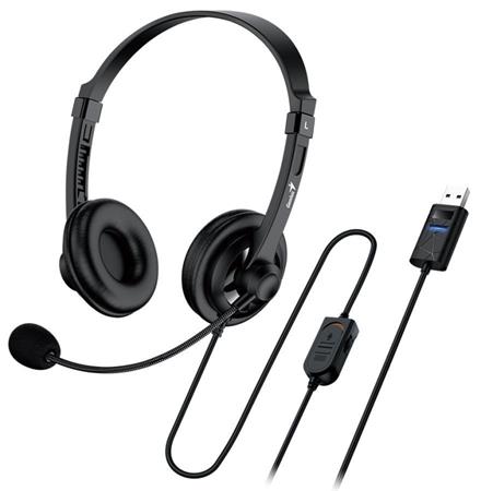 Ľahká náhlavná súprava so skvelým zvukom. Disponuje ovládaním priamo na kábli a nastaviteľným mikrofónom. Pripojenie je realizované cez USB konektor.