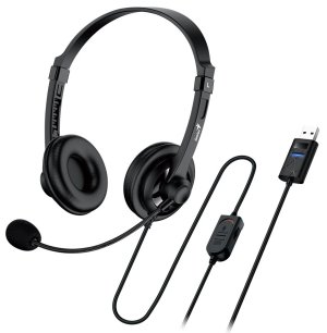Ľahká náhlavná súprava so skvelým zvukom. Disponuje ovládaním priamo na kábli a nastaviteľným mikrofónom . Pripojenie je realizované cez USB konektor.