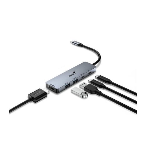 Dokovacia stanica Genius UH-500 obohatí stolný počítač, notebook, smartfón či tablet s rozhraním USB-C o ďalších päť portov. Hub ponúka port HDMI pre výstup obrazu vo vysokom rozlíšení až 4K , dvojicu portov USB 3.0 a USB-C, pričom jeden z nich je určený iba pre nabíjanie a podporuje funkciu rýchleho napájania Power Delivery 3.0 s celkovým výkonom až 100 W. Vďaka tomu je dokovacia stanica Genius UH-500 kompatibilná s celým radom možností rôznych periférnych.