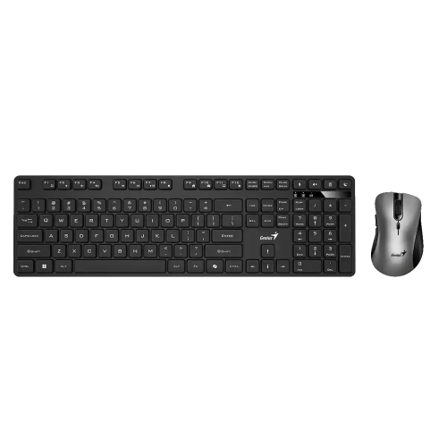Bezdrôtový set klávesnice a myši Genius KM-8216S , ktorý je navrhnutý pre každodennú prácu na PC. Podporuje komfortné písanie, činnosť s aplikáciami, tabuľkami, dokumentmi aj surfovanie po internete. Vo firemnej kancelárii aj domácnosti oceníte aj tichý chod . Bezdrôtové pripojenie zaisťuje miniatúrny USB prijímač , takže sa môžete rozlúčiť s prekážajúcimi káblami na stole.