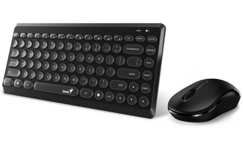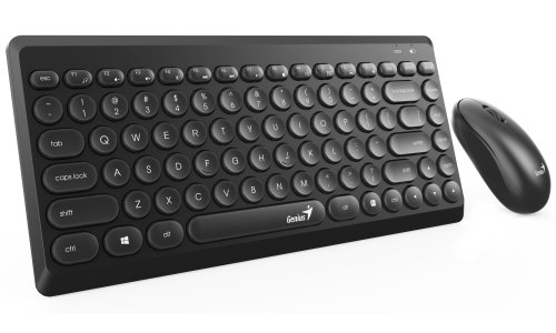 Bezdrôtový set klávesnice a myši GENIUS LuxeMate Q8000 pre ľahkú a pohodlnú prácu a ovládanie zariadenia. Klávesnica Genius je vybavená klávesmi s nízkym profilom pre rýchle a komfortné písanie. Funkčné klávesy uľahčia ovládanie médií a podporia efektívnu kancelársku činnosť alebo surfovanie po internete. Myš Genius disponuje senzorom s rozlíšením až 1600 dpi , ktoré umožňuje plynulý a presný pohyb po pracovnej ploche. Ergonomický dizajn podporí pevné a pohodlné uchopenie. Celý set GENIUS LuxeMate Q8000 pripojíte bezdrôtovo cez miniatúrny USB adaptér .