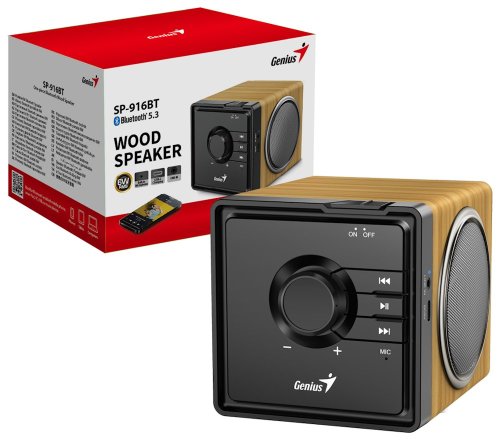 Bluetooth reproduktor Genius SP-916BT , ktorý zaujme dreveným dizajnom a kvalitným zvukom o celkovom výkone 6 W. Je ideálny pre domáce počúvanie aj ozvučenie v kancelárii. Vďaka bezdrôtovému pripojeniu pomocou Bluetooth umožňuje streamovanie hudby zo smartfónu, tabletu alebo notebooku. Čistý a vyvážený zvuk potom poteší vaše ušné bubienky, či už potrebujete audio na počúvanie hudby, sledovanie filmov alebo videí. Kompaktné rozmery sú vhodné na umiestnenie do akéhokoľvek priestoru a uľahčujú prenášanie. Drevené prevedenie je nielen elegantné na pohľad, ale taktiež podporuje akustiku bez skreslenia. Zabudovaná batéria zvládne až 8 hodín prevádzky bez napájania.
