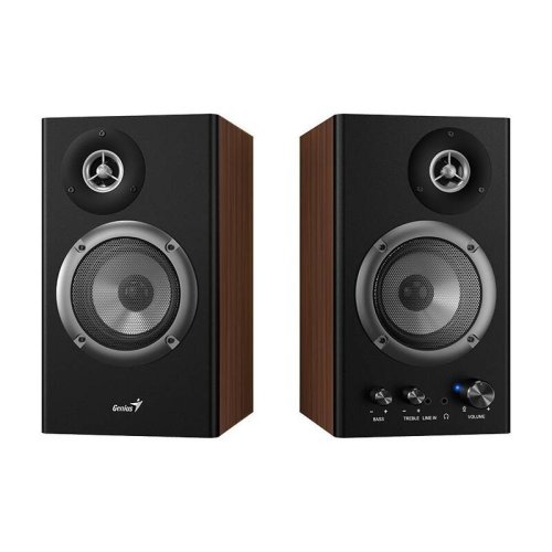 Stolové reproduktory Genius SP-HF1200B pre plnohodnotné ozvučenie multimédií. Vyznačuje sa kompaktnými rozmermi, vďaka ktorým konfiguráciu 2.0 ľahko umiestnite na stôl. Celkový výkon 36 W RMS zaistí jasné a silné audio pre komfortné sledovanie filmov, videí, počúvanie hudby, prípadne hranie hier. Drevená konštrukcia podporí prirodzenú reprodukciu zvuku bez nepríjemného skreslenia. Pre pripojenie k PC, notebooku, a dokonca aj smartfónu slúži 3,5 mm konektor . Samozrejmosťou je aj výstup pre pripojenie slúchadiel. Na prednej strane nájdete aj regulátor hlasitosti či basov.