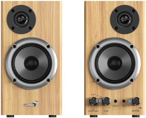 Súprava reproduktorov Genius SP-HF520BT pre ozvučenie multimédií. Vďaka drevenej konštrukcii je sada nielen elegantná na pohľad, ale taktiež je zaistený jasný a čistý zvuk bez skreslenia, ktorý je ideálny pre počúvanie hudby, sledovanie filmov alebo videí. Reproduktory Genius SP-HF520BT dosahujú celkový výkon 20 W a sú mimoriadne jasné a silné pri každodennom použití. Bezdrôtovú konektivitu zaisťuje rozhranie Bluetooth , vďaka ktorému pripojíte smartphone, tablet alebo notebook a zvuk z multimédií môžete streamovať priamo. Samozrejmosťou je tiež drôtové pripojenie cez 3,5 mm konektor .