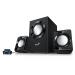 Multimediálny reproduktorový systém v konfigurácii 2.1 s celkovým výkonom 10 W. 3" subwoofer ponúka dokonale hlboké basy a dva 2,5" satelity zaistia vysoké vokály. Poteší tiež ovládanie hlasitosti , výstup pre slúchadlá a vstup pre mikrofón na podsvietenom ovládacom module .