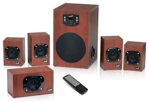 Šesťdielny systém domáceho kina s celkovým výkonom 125 W. Súčasťou balenia je napájací adaptér 100-240 V.