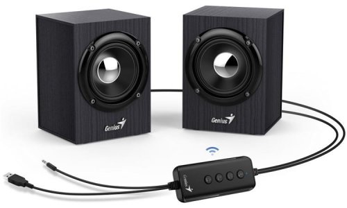 Genius SP-HF385BT, Reproduktory, 2.0, 4W, Bluetooth, 3,5 mm jack, USB, drevené, čierne