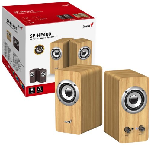 Reproduktory Genius SP-HF400 v drevenom prevedení sú ideálnou voľbou pre počúvanie hudby z počítača, tabletu, mobilného telefónu alebo MP3 prehrávača. Vďaka 2,5" širokopásmovým meničom poskytujú čistý stereo zvuk s výraznými basmi, ktorý poteší aj náročnejších poslucháčov.