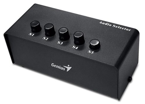 Genius Stereo Switching Box, Prepínač, audio, 2x RCA vstup, 5x 3,5 mm jack výstup, stereo, čierny