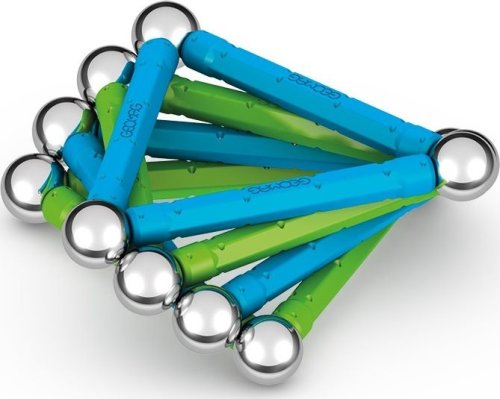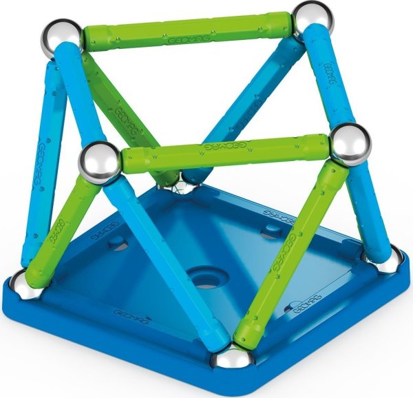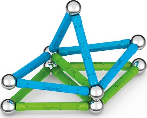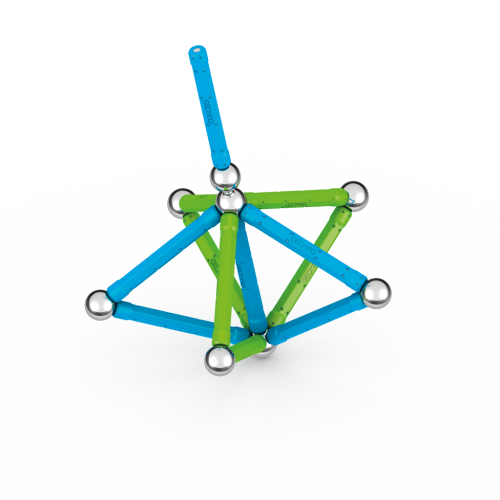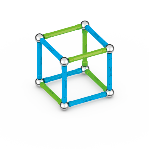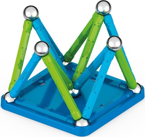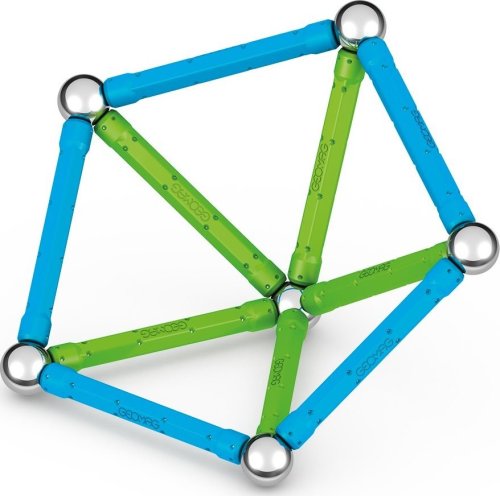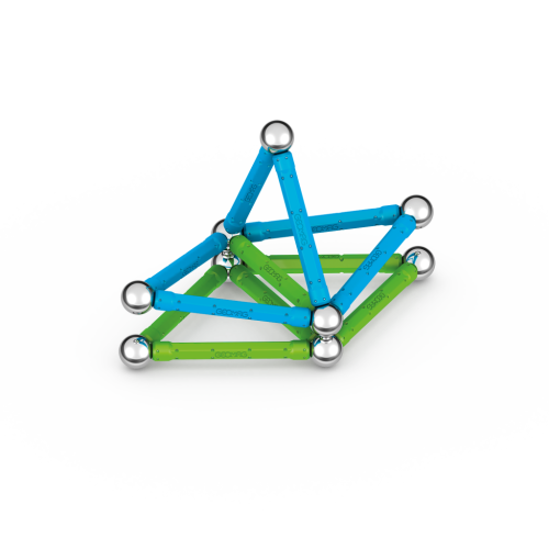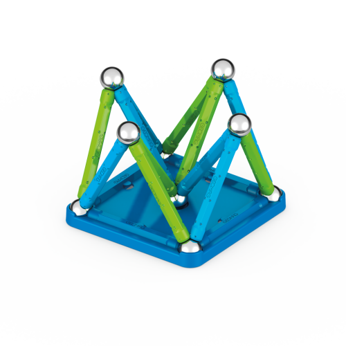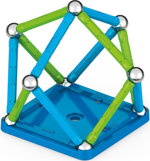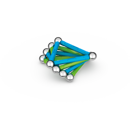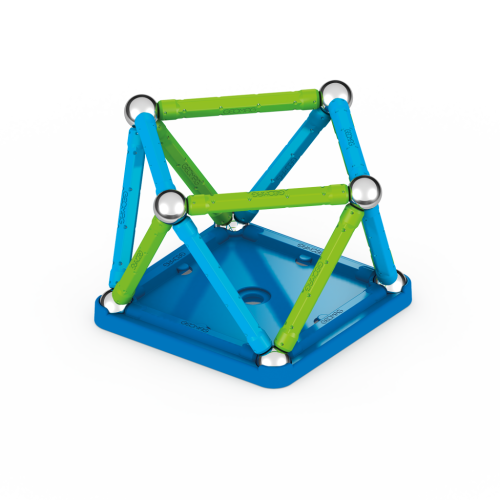 Magnetická stavebnica GEOMAG Classic zo 100% recyklovateľného materiálu. Stavebnica obsahuje 12 magnetických tyčiek v kombinácii modrej a limetkovej farby, 12 oceľových guličiek a 1 modrý štvorcový plastový podstavec. Celkom 25 dielikov. Stavebnica je určená pre deti od 3 rokov. Vyrobené vo Švajčiarsku.