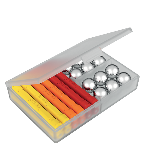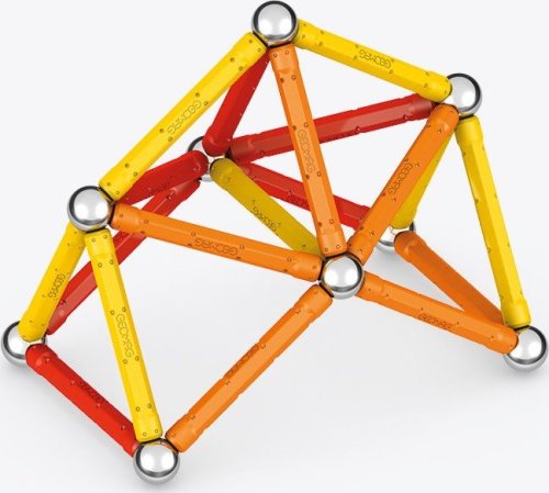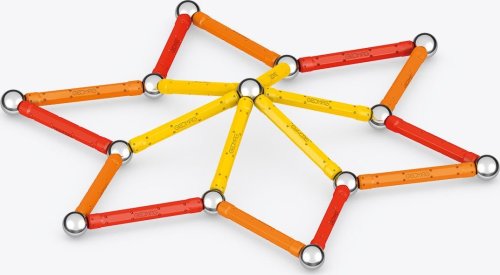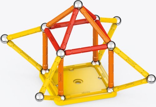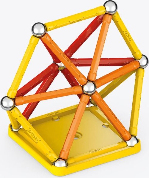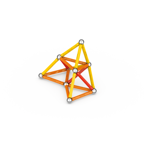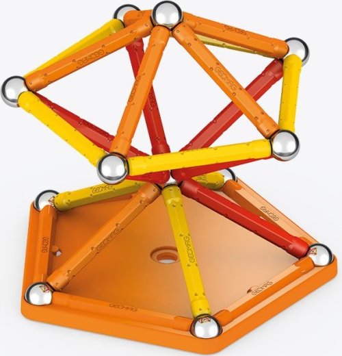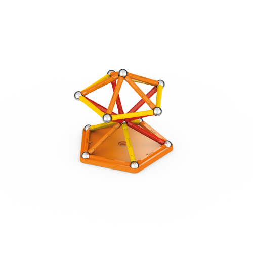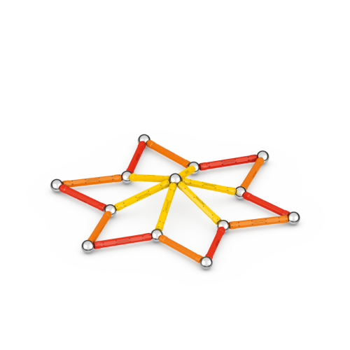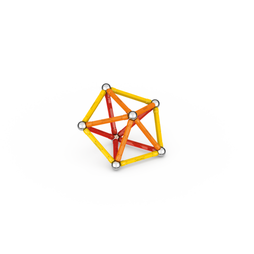 Magnetická stavebnica GEOMAG Classic zo 100% recyklovateľného materiálu. Stavebnica obsahuje 20 magnetických tyčiek v kombinácii žltej, oranžovej a červenej farby, 20 oceľových guličiek, 1 žltý štvorcový a 1 oranžový päťuholníkový plastový podstavec. Celkom 42 dielikov. Stavebnica je určená pre deti od 3 rokov. Vyrobené vo Švajčiarsku.