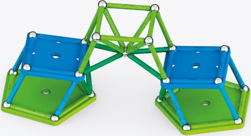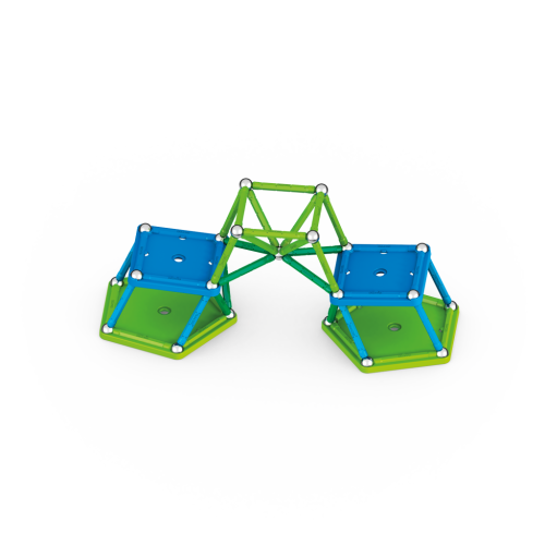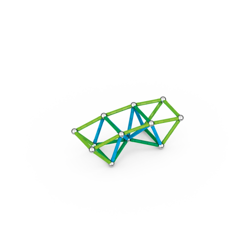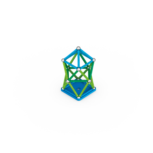 Stavebnica je vyrobená zo 100% recyklovaného plastu, čo zaisťuje ekologický prístup k výrobe a zároveň bezpečnosť pre deti od troch rokov. Magnetické tyčky sú veľmi silné, čo umožňuje pevné spojenie s kovovými guličkami a podporuje tvorbu rôznych tvarov a štruktúr. Plastové podstavce pridávajú konštrukciám stabilitu a rozširujú možnosti stavebných variantov. Vďaka kombinácii farebných tyčiek a guličiek v neutrálnych, ale výrazných odtieňoch modrej, zelenej a limetkovej, je stavebnica vizuálne atraktívna a podnecuje detskú predstavivosť.