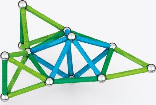 Geomag Classic 60 dielikov je magnetická stavebnica vyrobená vo Švajčiarsku, ktorá ponúka deťom aj dospelým možnosť kreatívne tvoriť rôznorodé 3D konštrukcie. Súprava obsahuje celkom 60 dielikov, medzi ktorými nájdete 28 magnetických tyčiek v kombinácii modrej, zelenej a limetkovej farby, 28 oceľových guličiek a štyri plastové podstavce – dva modré štvorcové a dva limetkové päťuholníkové. Vďaka týmto komponentom môžu používatelia stavať stabilné a zaujímavé geometrické tvary, ako ukazujú príklady na obale aj vo vizuálnych materiáloch produktu.