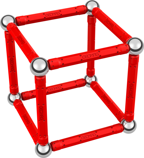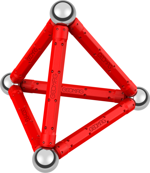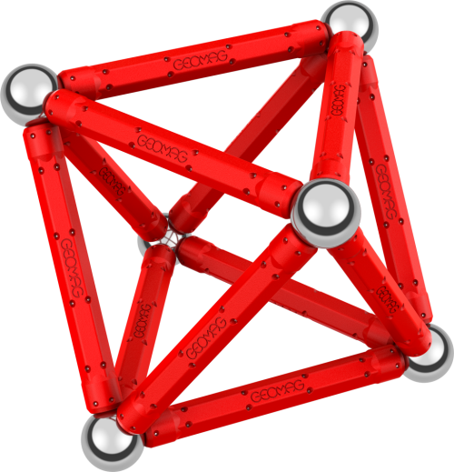 Naučte sa stavať geometrické tvary aj telesá s pomocou magnetickej stavebnice Geomag. Obsahuje 12 červených magnetických tyčiek a 12 oceľových guličiek.