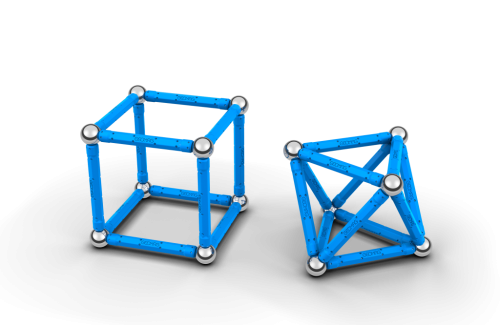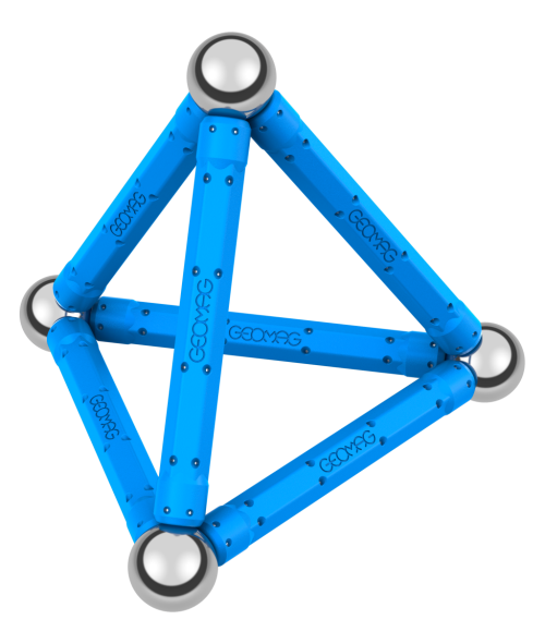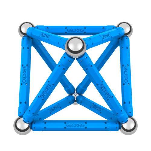 Naučte sa stavať geometrické tvary aj telesá s pomocou magnetickej stavebnice Geomag. Obsahuje 32 modrých magnetických tyčiek a 16 oceľových guličiek.