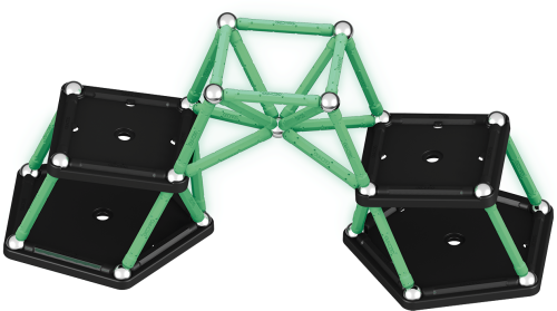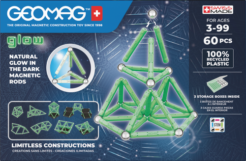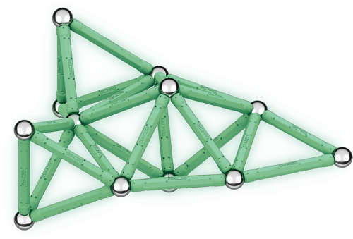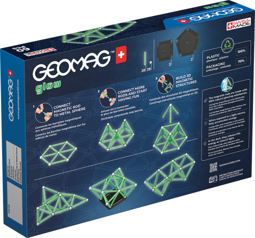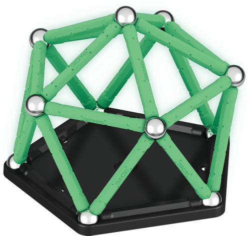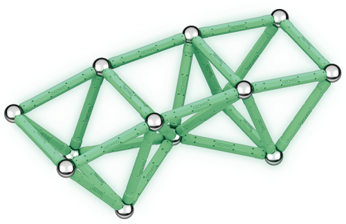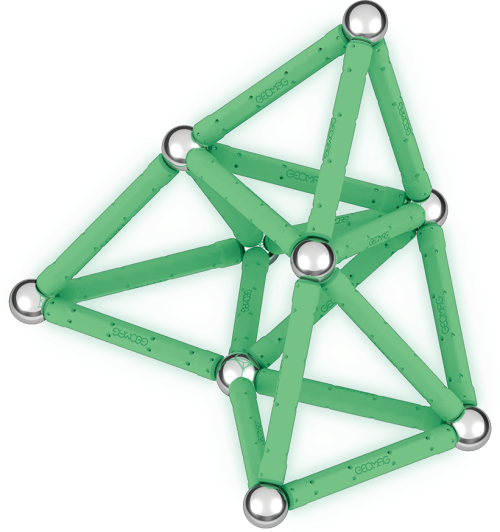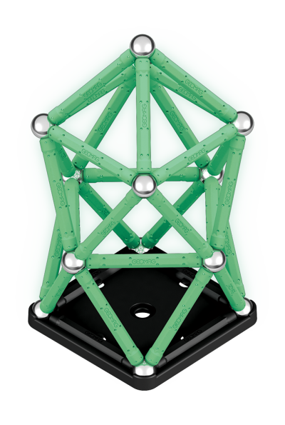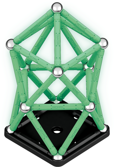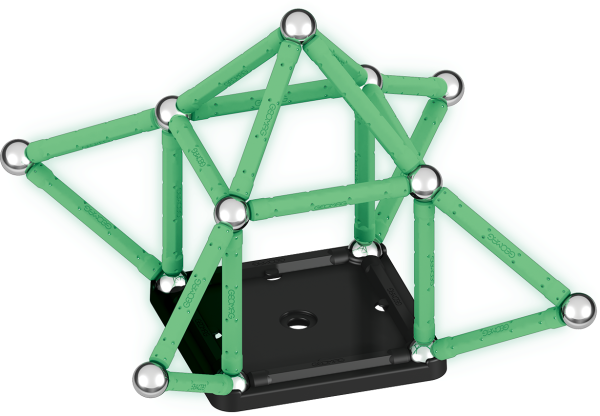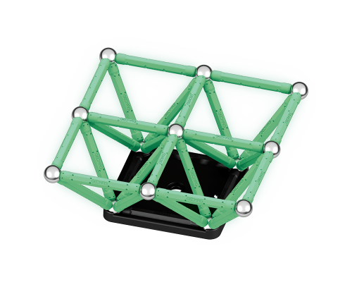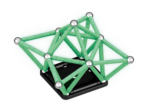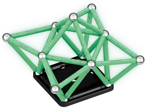 V tme žiariaca magnetická stavebnica ti prinesie nový rozmer zábavy. Stavebnica zo 100% recyklovaného plastu sa v tme rozhodne nestratí! Balenie obsahuje celkom 60 dielikov - 28 svietiacich tyčiek, 28 guličiek a dva stabilné podstavce čiernej farby v tvare štvorca a päťuholníka. Určené pre deti od 3 rokov.