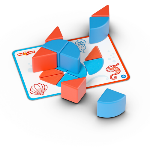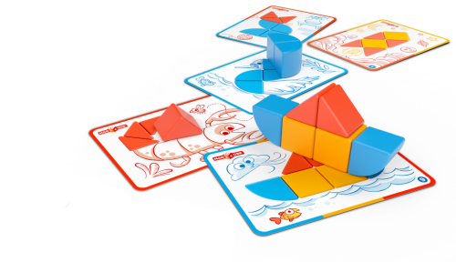 Unikátna magnetická stavebnica doplnená kartičkami pre ľahké vytváranie obrázkov. Prechádza od jednoduchých po zložitejšie varianty práce s rôznymi tvarmi. Šablóny zodpovedajú skutočnej veľkosti dielikov 1:1. Atraktívna zábava pre menšie deti – podporuje fantáziu a tvorivosť. Obsahuje 10 magnetických prvkov a 6 obojstranných kartičiek s 12 návodmi. Vyrobené zo 100% recyklovaného plastu. Vhodné pre deti od 2 rokov.