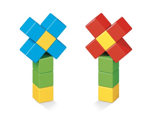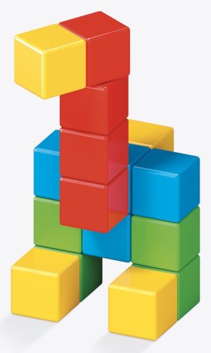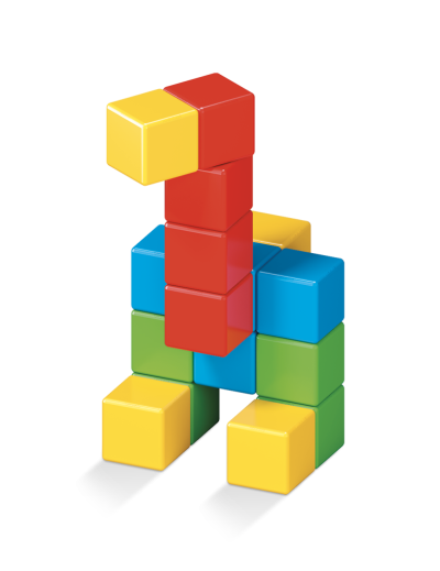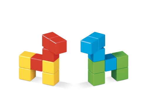 Magnetické kocky s unikátnou vnútornou konštrukciou, vďaka ktorej sa vzájomne priťahujú zo všetkých strán. Obsahuje 16 magnetických kociek v štyroch farbách.