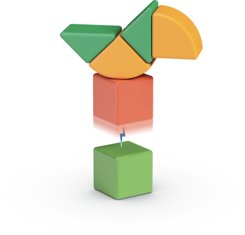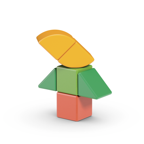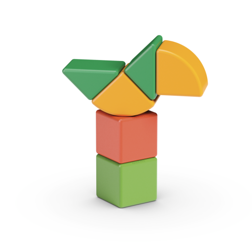 Geomag Magicube Shapes je stavebnica určená deťom od 1 do 5 rokov, ktorá obsahuje šesť magnetických dielikov rôznych tvarov a farieb. Súprava zahŕňa tri základné tvary – kocôčky, trojuholníky a polkruhy, ktoré sú vyrobené z farebného plastu v odtieňoch zelenej, oranžovej a žltej. Vďaka magnetom zabudovaným do jednotlivých dielikov umožňuje táto stavebnica ľahké a bezpečné spájanie, čo deti motivuje k objavovaniu a tvoreniu rôznych modelov.