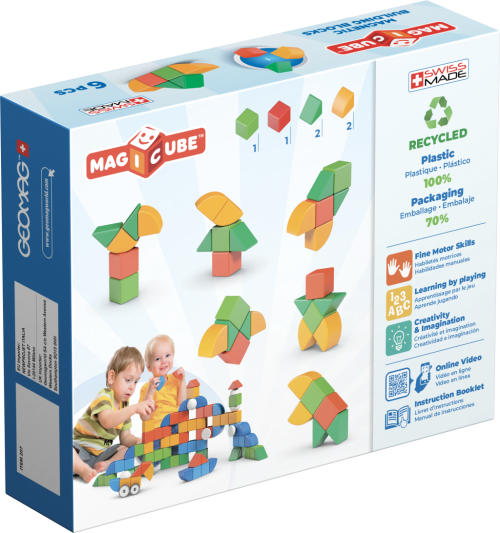 Celkovo je Geomag Magicube Shapes 6 dielikov praktický a ekologický štartovací set, ktorý deťom prináša nekonečné možnosti stavania a učenia. Vďaka jednoduchému magnetickému spojeniu podnecuje detskú zvedavosť a zručnosť, zatiaľ čo farebné dieliky priťahujú pozornosť a podporujú vizuálne vnímanie.