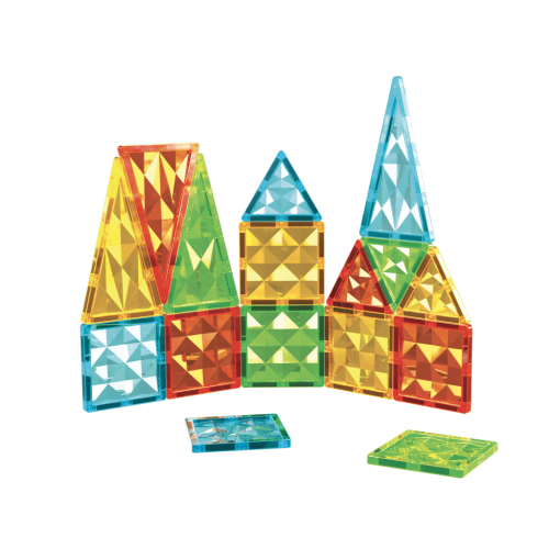 Geomag Magnetic Tiles 16 dielikov obsahuje magnety na všetkých stranách jednotlivých tvarov. Je možné tak ľahko vytvárať akékoľvek 2D obrazce alebo 3D štruktúry. Stavebnica rozvíja manuálnu zručnosť, kreativitu a fantáziu, učí farby, geometrické tvary, ale hlavne si s ňou deti užijú veľa zábavy. Obsahuje 16 priehľadných štruktúrovaných dielikov v štyroch farbách – 8 štvorcov, 4 rovnostranné a 4 rovnoramenné trojuholníky. Vhodné od 3 rokov.