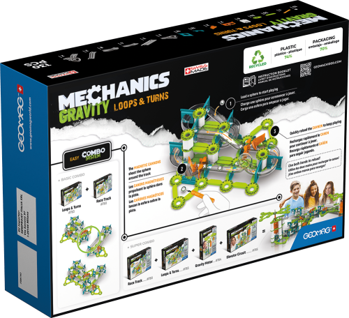Geomag Mechanics Gravity 130 dielikov je stavebnica určená pre deti od 8 rokov, ktorá kombinuje princípy gravitácie a magnetizmu, aby vytvorila dynamickú a zábavnú konštrukciu. Súprava obsahuje celkom 130 dielikov, ktoré umožňujú zostaviť zložitý okruh s rôznymi slučkami a zákrutami, po ktorých sa pohybujú kovové guličky. Vďaka priehľadným dráham a farebným komponentom v odtieňoch zelenej, modrej a oranžovej je možné sledovať celú cestu guličiek a ich interakciu s jednotlivými časťami stavebnice.