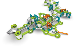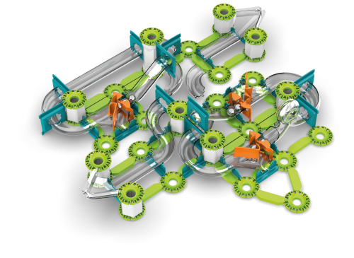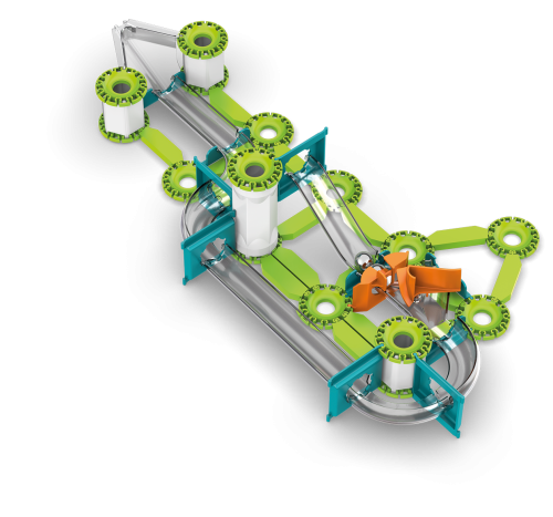 Geomag Mechanics Starter Set so 153 dielikmi je stavebnica určená pre deti od 8 rokov a dospelých, ktorá umožňuje zostaviť jedenásť rôznych okruhov a tratí pre oceľové guličky. Vďaka prepracovanému systému spájania dielikov je možné vytvárať rôzne modely, ktoré demonštrujú fyzikálne zákony v praxi. Hlavnými prvkami sú priehľadné dráhy a oblúky, zelené spojovacie časti a biele valcové podpery, ktoré spoločne tvoria stabilné a variabilné konštrukcie. Oranžové mechanické časti ako magnetické delo alebo pohyblivé prvky pridávajú stavebnicu dynamiku a zábavu pri sledovaní pohybu guličiek.