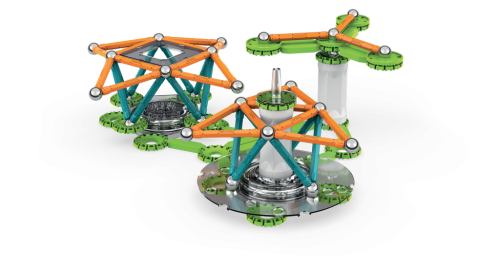 Skús použiť klasické Geomag guličky ako ložiská a vytvor si modely, ktoré len pomocou samotnej magnetickej sily rozpohybuješ! Postavíš viac menších modelov alebo jeden veľký? Bude ťa to baviť! Stavebnica obsahuje celkom 160 dielikov. Všetky farebné plastové časti stavebnice sú z recyklovaného plastu. Odporúčané pre deti od 7 rokov.