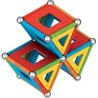 Všetky plasty použité na poťahy tyčiek, panely a podstavce sú zo 100% recyklovaného materiálu a ich dokonalé farby potešia aj tie najnáročnejšie. Súčasťou balenia sú navyše praktické transparentné úložné boxy, ktoré sú taktiež vyrobené z recyklovaného plastu. S nimi máte možnosť mať stavebnicu stále pri sebe a navyše prehľadne zrovnanú vo vreckovom balení. Stavebnica obsahuje 28 magnetických tyčiek rôznych farieb, 20 oceľových guličiek, 16 trojuholníkových, 12 štvorcových a 2 päťuholníkové výplne v kombinácii farebných odtieňov. Celkom 78 dielikov. Vhodné od 5 rokov. Vyrobené vo Švajčiarsku.