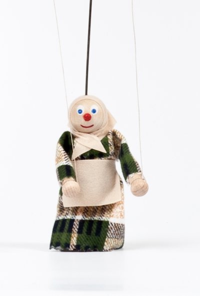 Do bábkového divadla patrí určite babička. Do akej rozprávky sa vám bude hodiť? Ak nepoznáte rozprávku O Budulínkovi alebo O Červenej Karkulke, určite si môžete zahrať príbeh o svojej najvhodnejšej babičke. Ponúkame vám bábku o veľkosti 12 cm bez vodiaceho drôtika, vyrobenú starostlivo v našej chránenej dielni. Produkt sa môže líšiť vo farebných detailoch. Hlavné vlastnosti: ručne vyrábaná bábka z chránenej dielne veľkosť bábky je 12 cm bez vodiaceho drôtika vďaka vodiacim nitiam, má bábka pohyblivé ruky