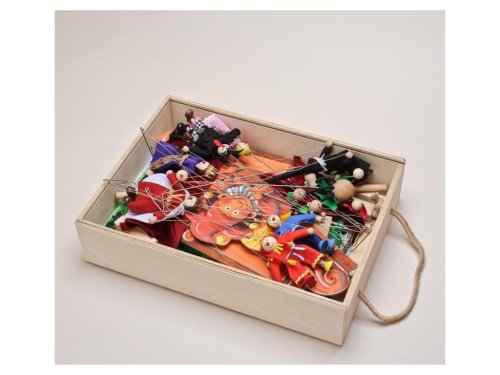 Hľadáte veľké bábkové divadlo s hromadou bábok? Je tu pre Vás Gerlichovo maxi divadlo so 14 krásnymi bábkami. Prinášame vám krásne, prepracované, rozprávkové drevené bábkové divadlo s jednotlivými bábkami, ktoré prebudia u Vašich detí fantáziu, posilnia pamäťové a výrazové schopnosti a bude baviť celú rodinu. V drevenej krabici o rozmere 46x41x32 cm nájdete 14 drevených bábok z chránenej dielne, 11 farebných scén, proscenium a oponu. Veľkosť bábok 12-15 cm. Bábky sa môžu líšiť vo farebných detailoch. Obsahuje nové scény na krúžkovej väzbe (s podlahou) a bočné scenérie: na zámku / pred zámkom pred chalupou / v chalupoperníková chalúpka / v perníkovej chalúpkev lese / u jaskyne pekle / u rybníkav rybníku Obsahuje bábky: kráľ Ferdinand kráľovná Alžběta drakčertík Brunočarodejník Viliamkašpárekbabička Anežkakluk Jankoholčička Maruškamyslivec Milošježibaba Dorota Celá bábková zostava je zabalená v praktickej drevenej krabici s posuvným vekom a úchytom. Hlavné vlastnosti: drevené divadlo s scénami na krúžkovej väzbe, kulisami a 14 bábkavo riešené scény s podlahou pre ešte lepší divácky zážitok