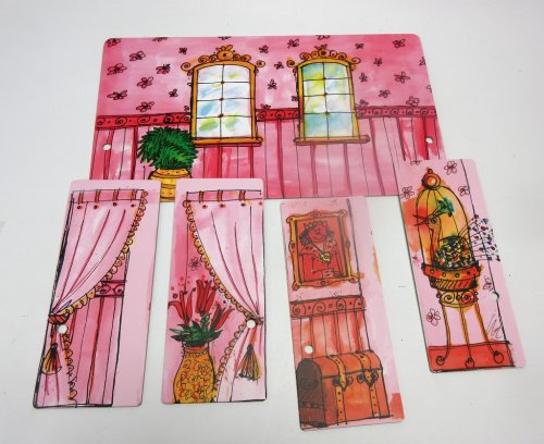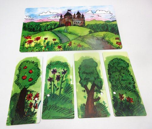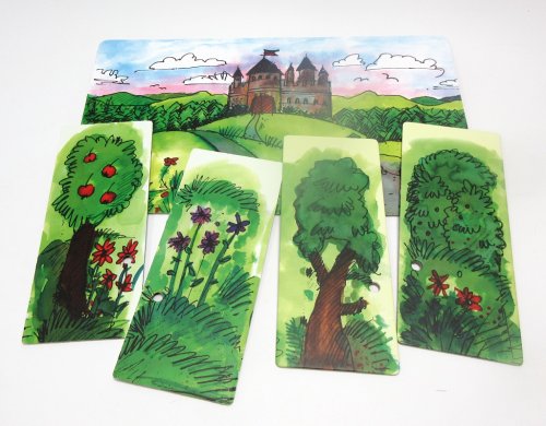 Ponúkame obojstrannú scénu a bočné scény pre Gerlichovo bábkové divadlo predstavujúce pohľad z lesa na kráľovský zámok a krásnu komnatu vo vnútri kráľovského zámku. Hlavné vlastnosti: rozmery hlavnej scény sú 40x23 cm, 4ks bočná kulisa 9,5x23 cmtáto scéna je určená pre Gerlichove bábkové divadlá