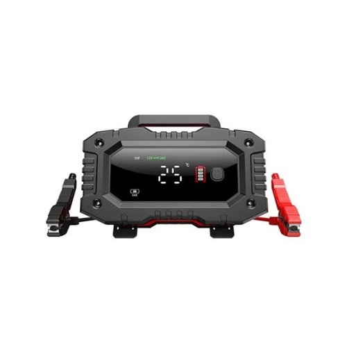 Veľký prehľadný LCD displej poskytuje kompletný prehľad o stave nabíjania, napätia, prúdu a ďalších dôležitých parametroch. Intuitívny ovládací panel umožňuje jednoduchú voľbu režimu nabíjania. Pripojenie k batérii je jednoduché vďaka 1,2 m dlhému nabíjaciemu káblu s krokosvorkami.