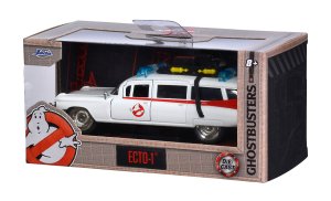 Kovový model auta Gostbusters ECTO-1 v mierke 1:32 na voľnobeh. Otváracie dvere. Veľkosť 14 cm. Displej obsahuje 6 ks.