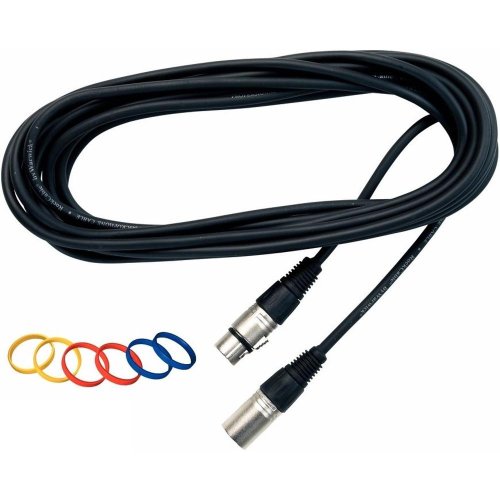 Mikrofónny kábel Konektory XLR (F) - XLR (M) s kovovým plášťom a plastovým puzdrom 6 kódovacích krúžkov v 3 farbách Dĺžka kábla 9 m Hrúbka kábla 6 mm Čierna farba