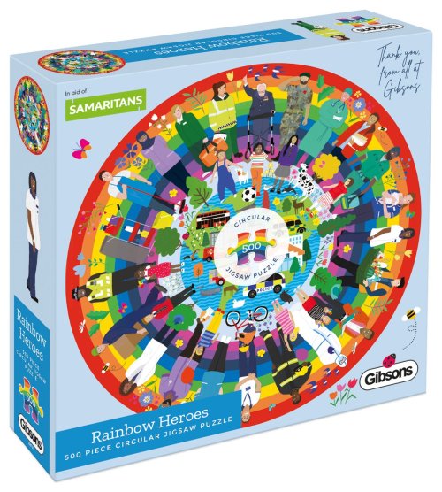 Gift of the Year 2021 WINNER - Víťaz Pamätnej a charitatívnej kategórie na udelenie Daru roku 2021. Rok 2021 si budeme pamätať ako veľmi podivný a náročný rok. Tí, ktorí nás udržovali v bezpečí, kŕmili, starali sa o nás a dodávali veci, ktoré potrebujeme, sa stali našimi hrdinami. Objavili sme nových "obyčajných" hrdinov v okolí našich domovov. Ako poďakovanie hrdinom daruje výrobca Gibsons 2 libry z každého predaného puzzle Rainbow Heroes charitatívnej organizácii Samaritans. Puzzle od anglického výrobcu GIBSONS. Rozmer zloženého puzzle cca priemer 49 cm
