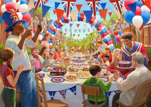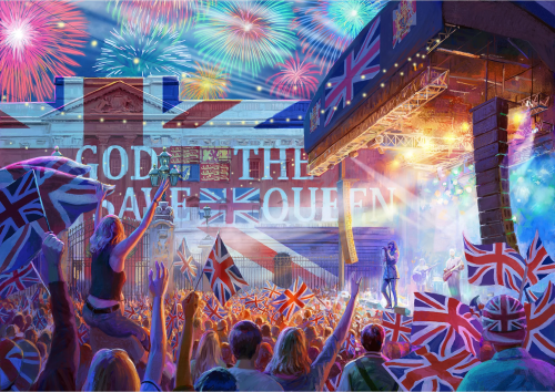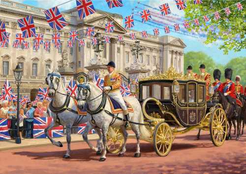Spoznajte štyri významné udalosti, ktoré sa konajú počas predĺženého júnového víkendu v Británii: Derby v Epsom Downs, koncert v Paláci, jazda kráľovninho kočiara v rámci Trooping the Colour a samozrejme pouličné oslavy pri jubilejnom kráľovskom obede! Balenie obsahuje 4 puzzle s rovnakým počtom dielikov a rozmerom. Súčasťou balenia sú predlohy skladaných motívov.