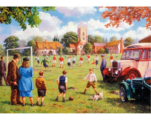 Balenie obsahuje 2 puzzle s rovnakým počtom dielikov a rozmerom. Do dediny dorazil športový deň a vo vzduchu je cítiť súťaživosť. Sledujte z postranných čiar, ako rodičia fandia a deti vyzerajú, že sú odhodlané vyhrať, dokonca aj šteňa sa chce zapojiť!